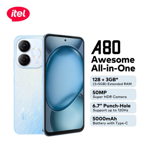 itel A80 6.7″ 3GB RAM/128GB ROM 5000mAh 50MP 4G Android 14-Blue
